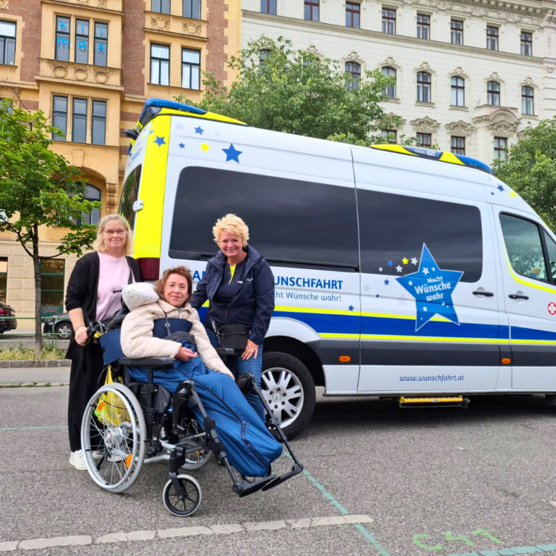 Für Andrea, die mit einer fortgeschrittenen Erkrankung lebt und auf einen Rollstuhl angewiesen ist, wurde kürzlich ein langgehegter Wunsch wahr: Noch einmal Wien erleben – für einen Tag, organisiert durch die Samariter-Wunschfahrt.